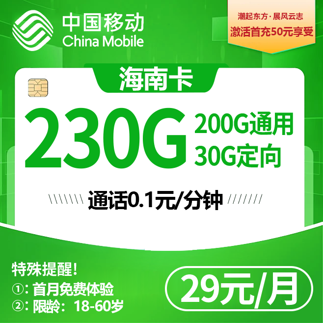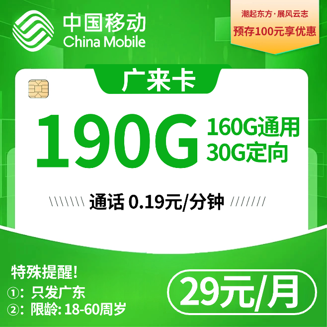 广东省内移动29元190G+4个亲情号【仅发广东】